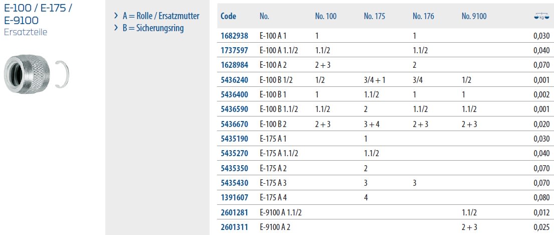 Pièces de rechange E-100 / E-175 / E-9100