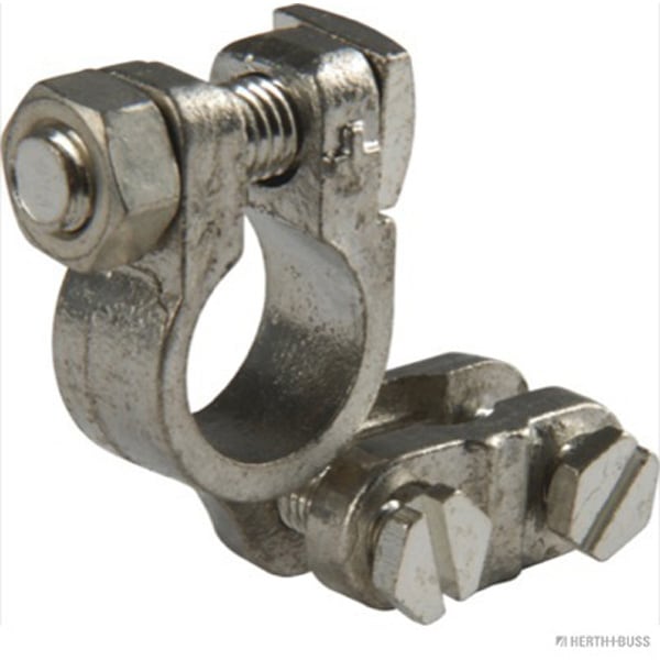 - Version de bornes de batteries Forme C • Pour pôle positif • Pièce en fonte • Avec douille en cuivre • Avec vis galvanisée • Borne fileté